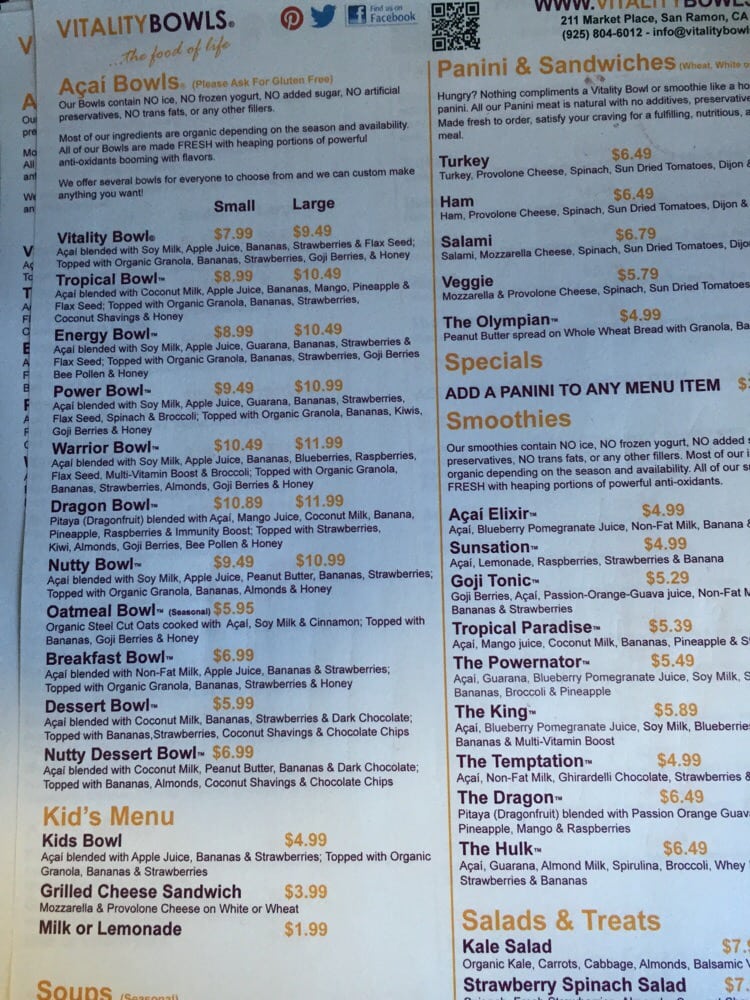 Welcome to Vitality Bowls San Ramon, your destination for healthy, vibrant meals! Nestled at 211 Market Pl, San Ramon, CA, this eatery specializes in delicious acai bowls, salads, and smoothies, perfect for health enthusiasts. Their menu features highlights like the Supergreen Goddess Salad and the flavorful Chimichurri Steak & Potato Bowl, both brimming with fresh ingredients and vibrant flavors.