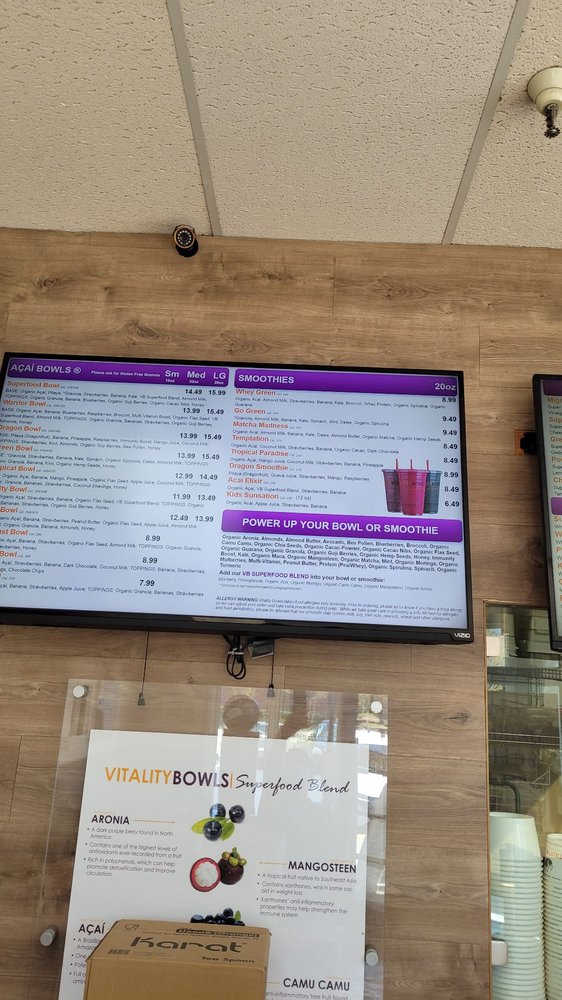 The acai bowls are a standout, particularly the Vitality Bowl and Tropical Bowl, crafted with organic acai and topped with an array of fresh fruits and granola, ensuring a nutrient-rich experience. Customers have praised the smoothies for their perfect texture and taste, while the staff's friendly service consistently enhances the experience. Whether you're looking for a hearty meal or a refreshing snack, Vitality Bowls San Ramon promises to satisfy and nourish!